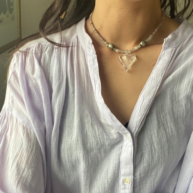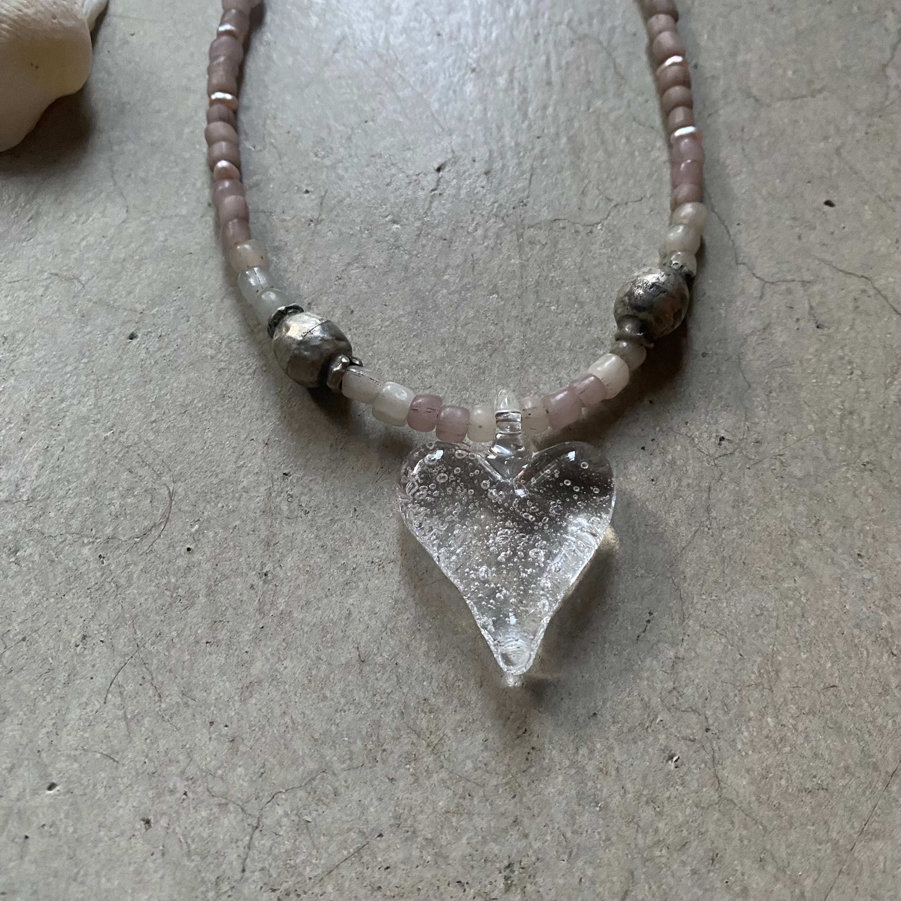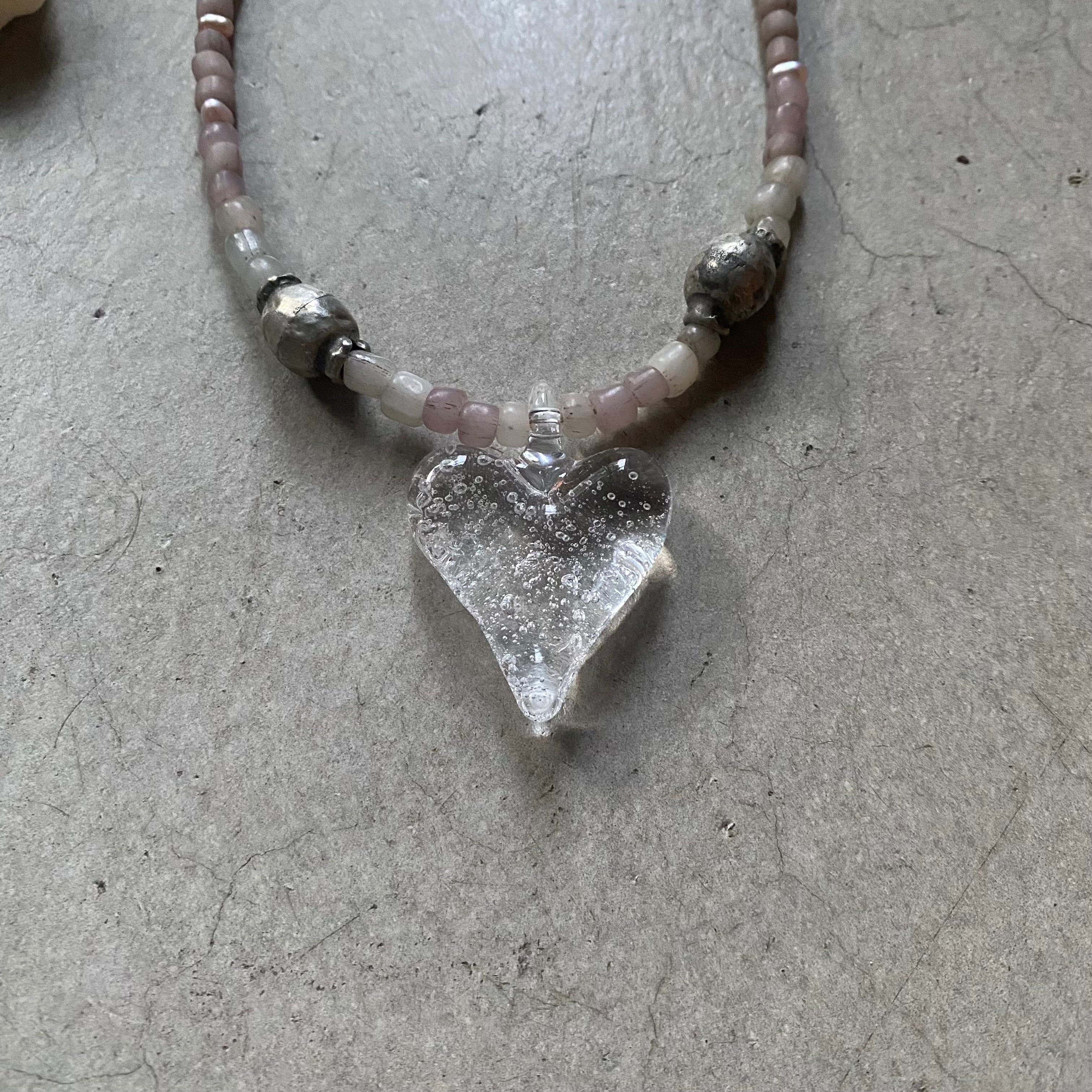 耐熱ガラスのハートのペンダントトップに