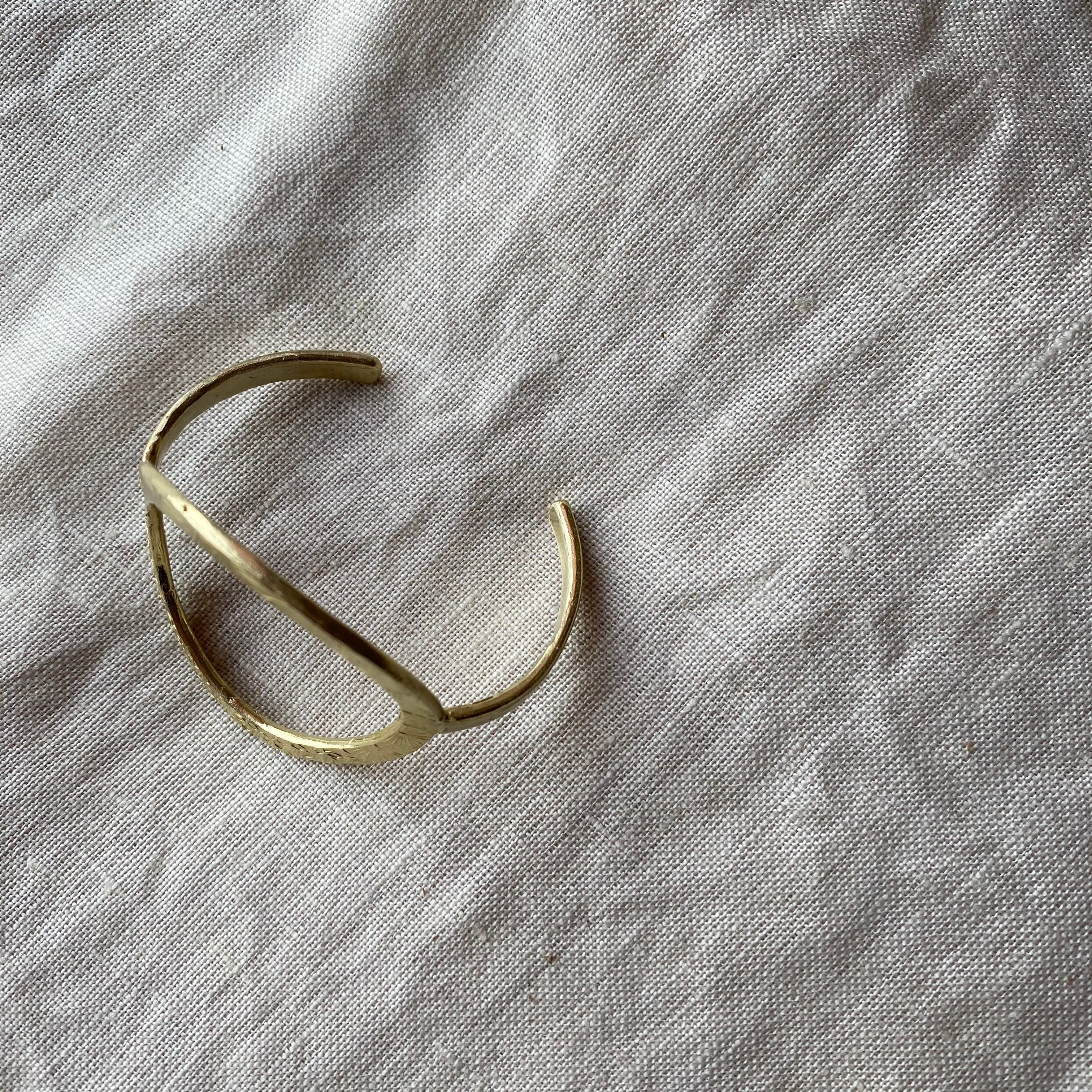 日本の古いかやの金具をリメイクして作ったバングル。