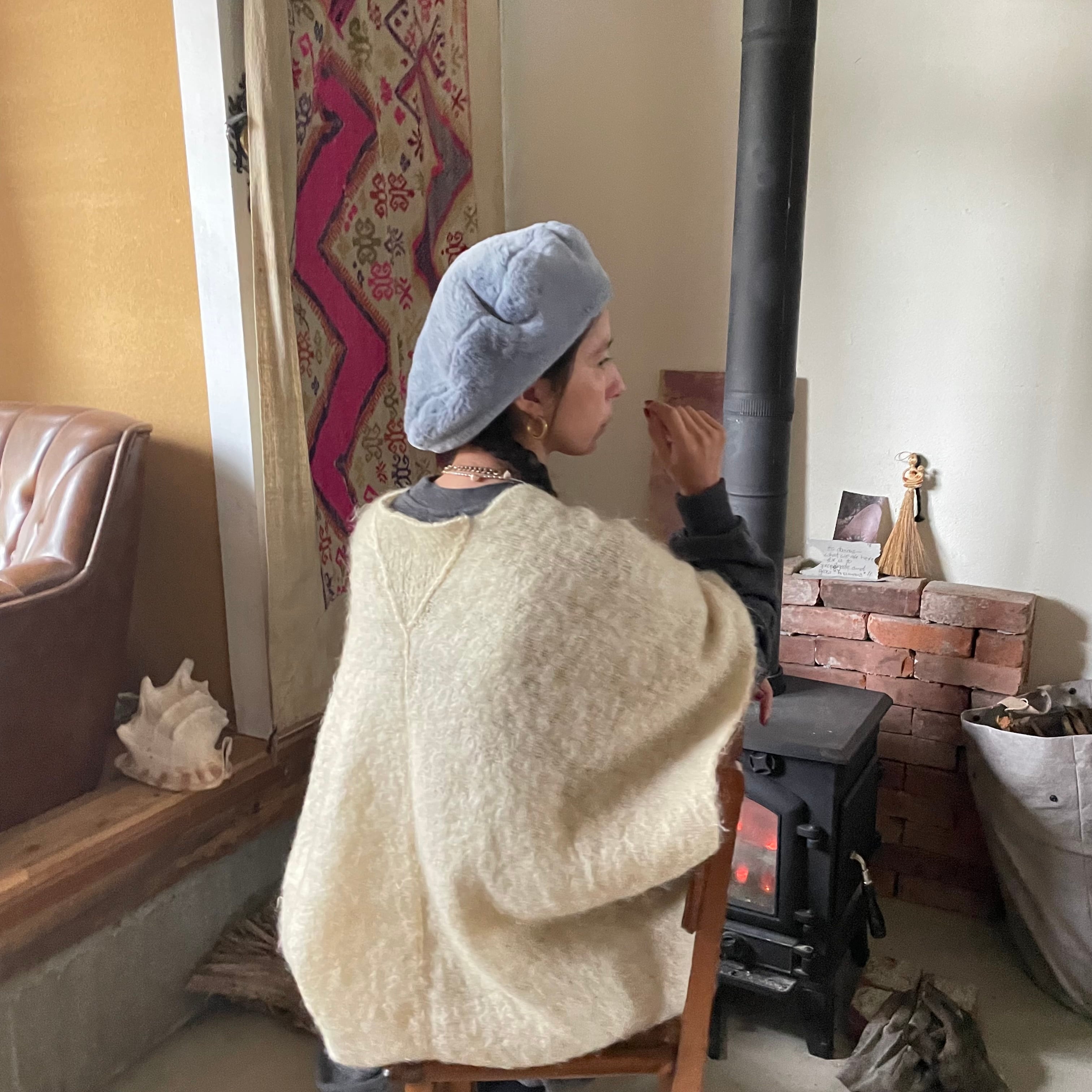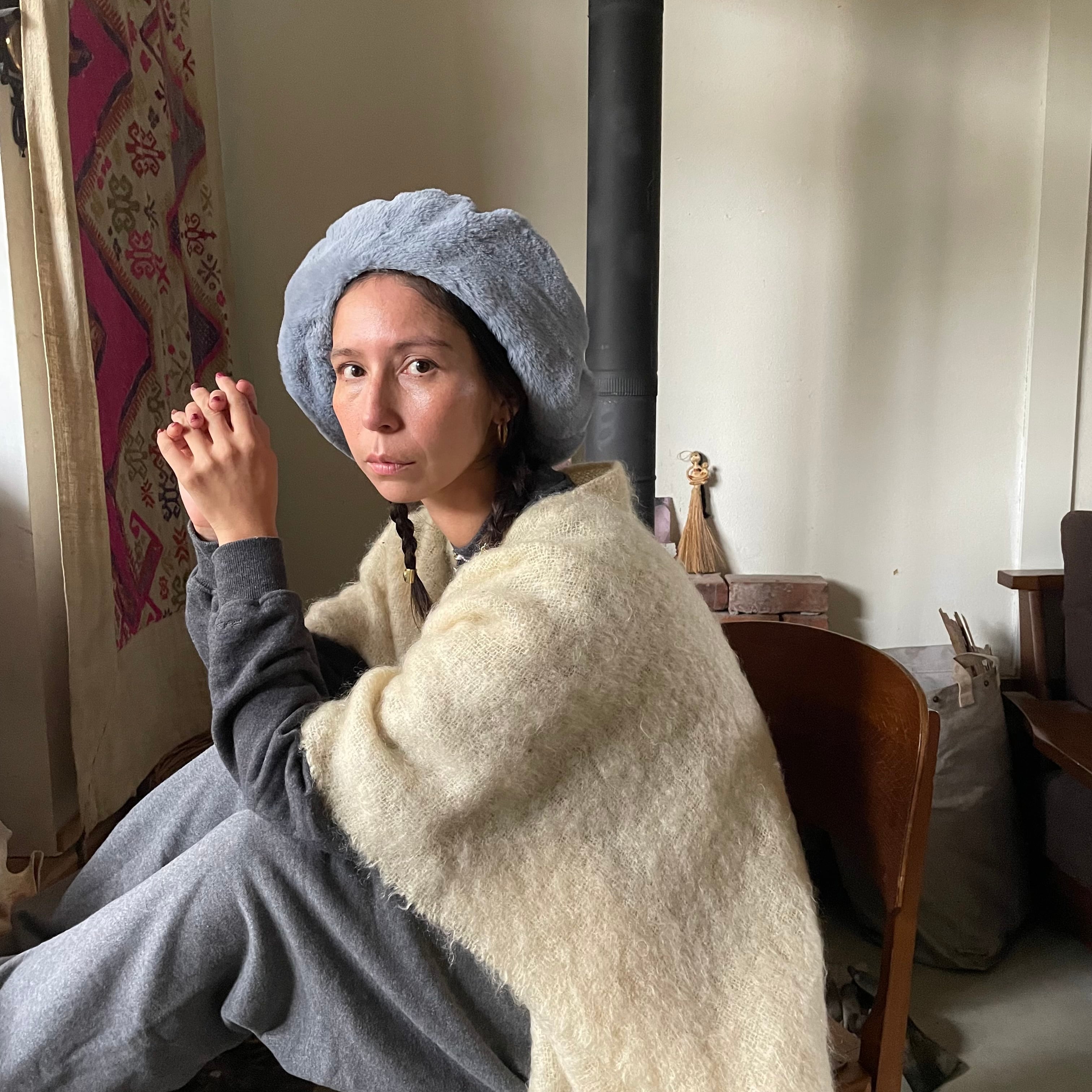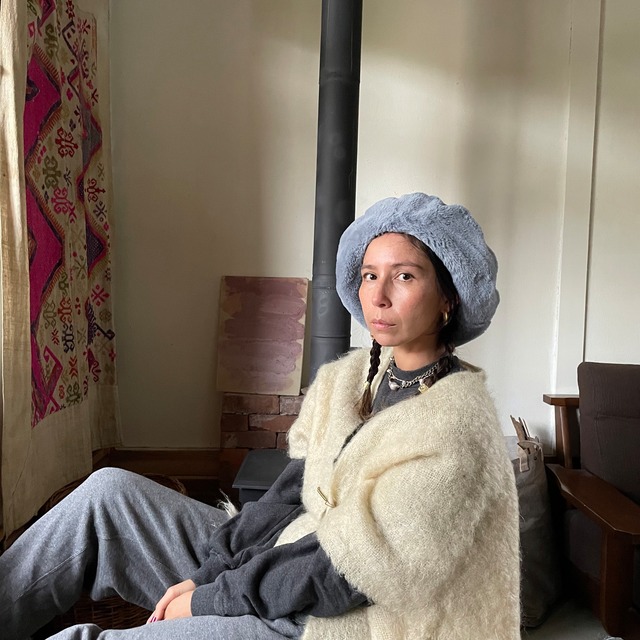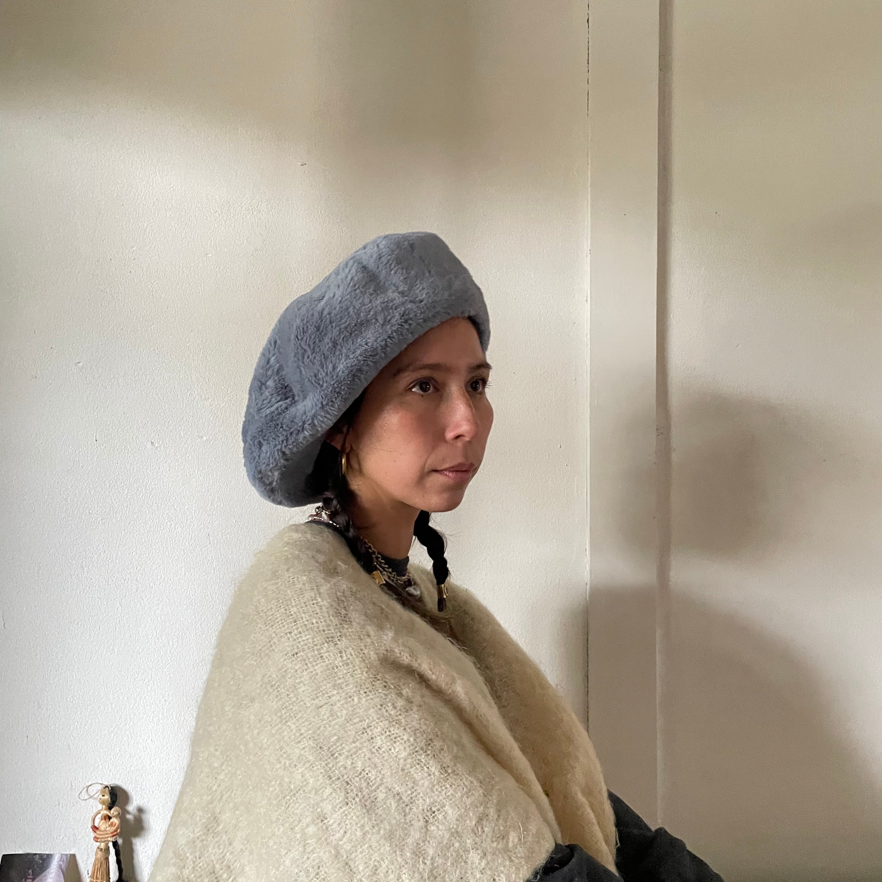 FUR BIG BERET -Blue Bird-
